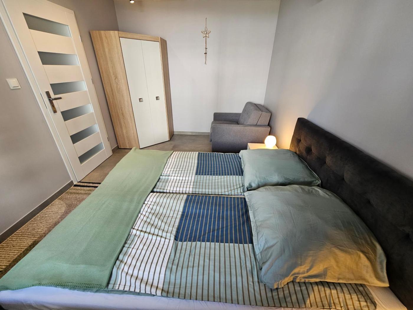 Apartament z 1 sypialnią. The well-equipped kitchen features a stovetop, a refrigerator, kitchenware and a microwave. This air-conditioned apartment is comprised of a dining area, a flat-screen TV with cable channels a wardrobe and a balcony. The unit offers 3 beds. Apartament - 5 osobowy. Powierzchnia pokoju ok.: 30 mkw.