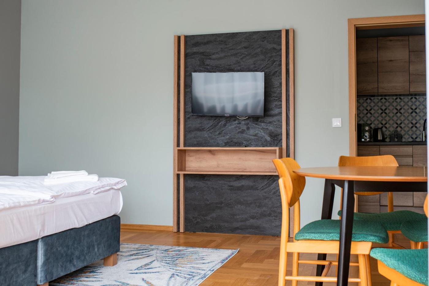 Apartament z 2 sypialniami. Featuring a private entrance, this spacious apartment also is comprised of 1 living room, 2 separate bedrooms and 1 bathroom with a shower. The apartment features parquet floors, a seating area with a flat-screen TV, a minibar, a tea and coffee maker as well as garden views. The unit offers 3 beds. Apartament - 6 osobowy. Powierzchnia pokoju ok.: 67 mkw. ;