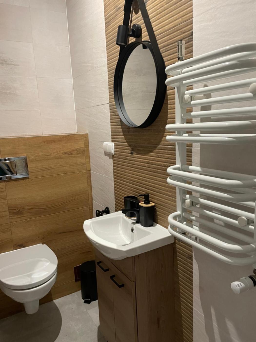 Apartament z 1 sypialnią. Featuring a private entrance, this apartment is comprised of 1 living room, 1 separate bedroom and 1 bathroom with a shower and a hairdryer. Meals can be prepared in the well-fitted kitchen, which is fitted with a stovetop, a refrigerator, a dishwasher and a microwave. The apartment offers a washing machine, a tea and coffee maker, a dining area, a flat-screen TV, as well as garden views. The unit offers 3 beds. Apartament - 5 osobowy. Powierzchnia pokoju ok.: 44 mkw. ;