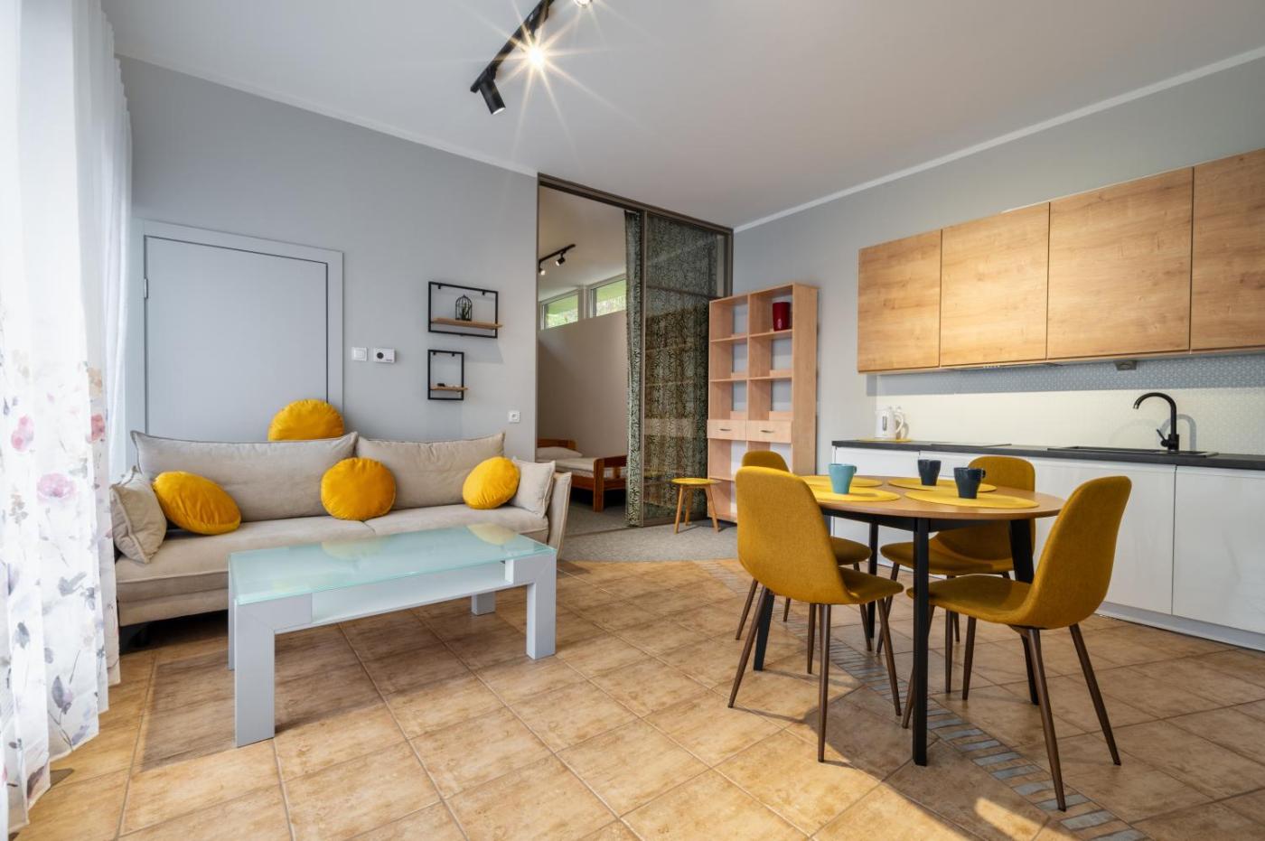 Apartament z 2 sypialniami. Featuring a private entrance, this air-conditioned apartment is comprised of 1 living room, 2 separate bedrooms and 1 bathroom with a shower. In the kitchen, guests will find a stovetop, a refrigerator, a dishwasher and kitchenware. The apartment offers soundproof walls, a dining area, an electric kettle, a high chair for children and a flat-screen TV. The unit offers 4 beds. Apartament - 6 osobowy. Powierzchnia pokoju ok.: 55 mkw.