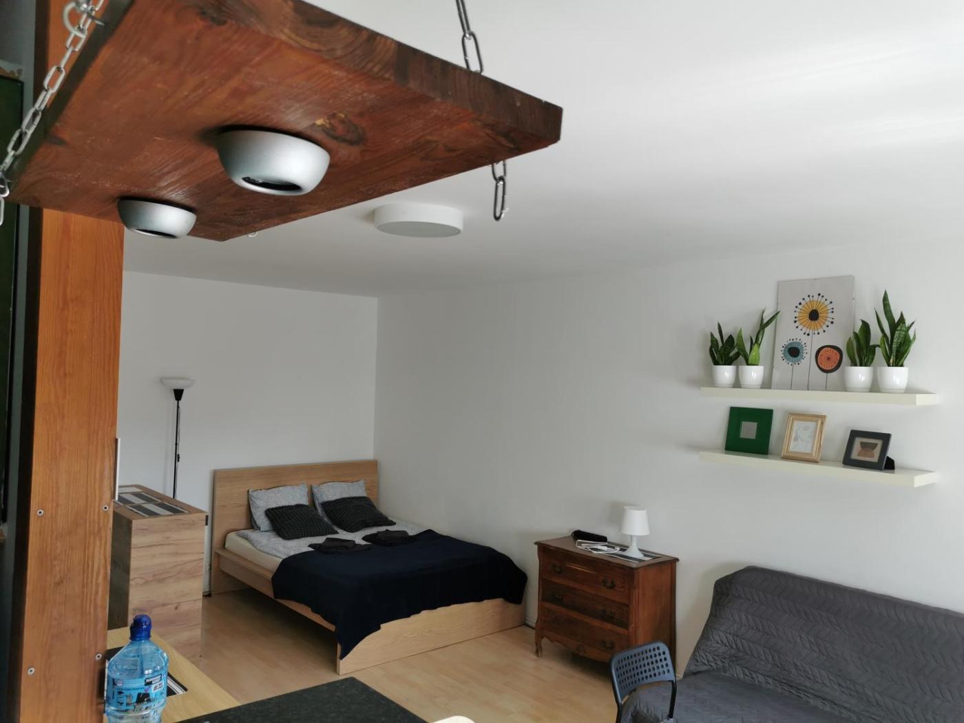 Apartament typu studio. This apartment consists of 1 bedroom, a kitchen and 1 bathroom with a shower and a hairdryer. In the well-fitted kitchen, guests will find a stovetop, a refrigerator, kitchenware and an oven. The apartment is equipped with a flat-screen TV, a washing machine, a tea and coffee maker, as well as heating. The unit offers 1 bed. Apartament - 2 osobowy. Powierzchnia pokoju ok.: 40 mkw.