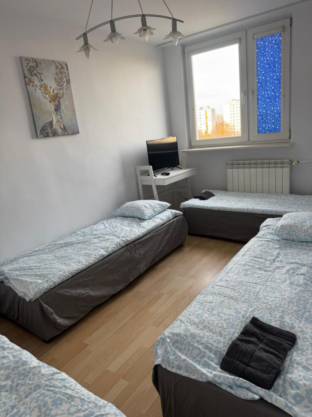Pokój Czteroosobowy. The quadruple room features a washing machine, a dining area, as well as a shared bathroom boasting a bath and a hairdryer. The quadruple rooms kitchen, which has a stovetop and an oven, is available for cooking and storing food. This quadruple room offers heating, a flat-screen TV and city views. The unit has 3 beds. Pokój Czteroosobowy - 3 osobowy. Powierzchnia pokoju ok.: 15 mkw. ;