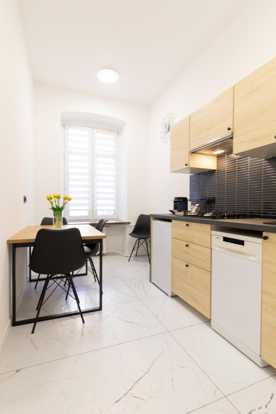 Apartament z 2 sypialniami. The apartment features 2 bedrooms and 1 bathroom with a shower and free toiletries. The well-equipped kitchen has a stovetop, a refrigerator, a dishwasher and kitchenware. The apartment provides a tea and coffee maker, a seating area, a dining area, a flat-screen TV, as well as a quiet street view. The unit offers 2 beds. Apartament - 4 osobowy. Powierzchnia pokoju ok.: 40 mkw.